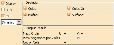 - Abweichung: Maximale Abweichung der erzeugten Translationsfläche von der ursprünglichen Komponente Führungselement, Profil, Führungselement 2 (begrenzte Geometrie) oder Fläche.