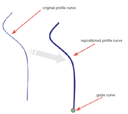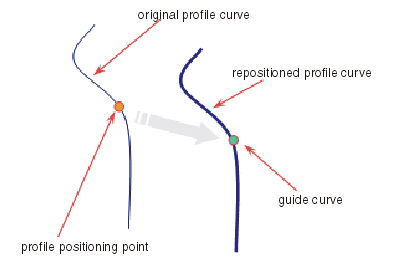 Ein Profil wird entlang der Führungskurve entsprechend dem auf dem Profil ausgewählten Punkt neu positioniert.