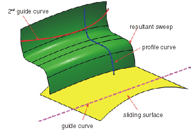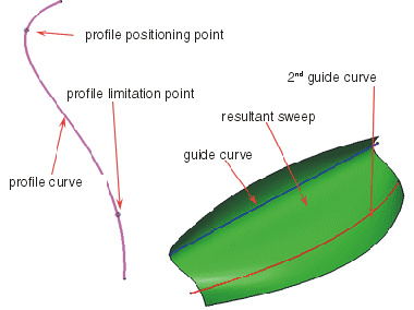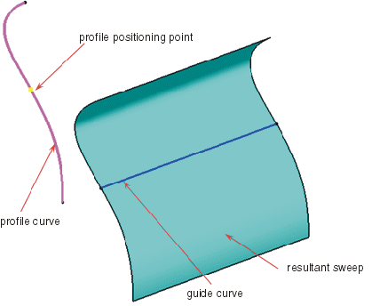 - Punkt: Das Profil wird entlang der Führungskurve oder Verschiebungsfläche entsprechend einem ausgewählten Punkt auf dem Profil neu positioniert.