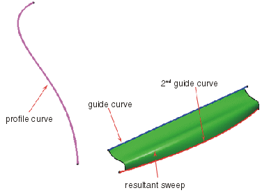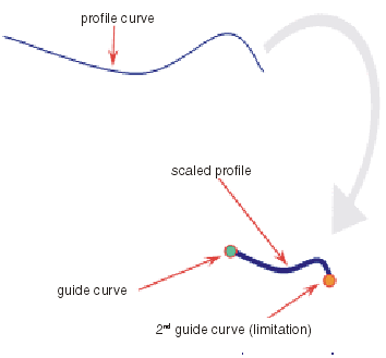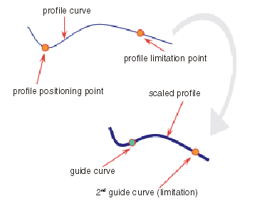 - Maßstab: Das Profil wird zwischen Führungskurve und 2. Führungskurve proportional skaliert.